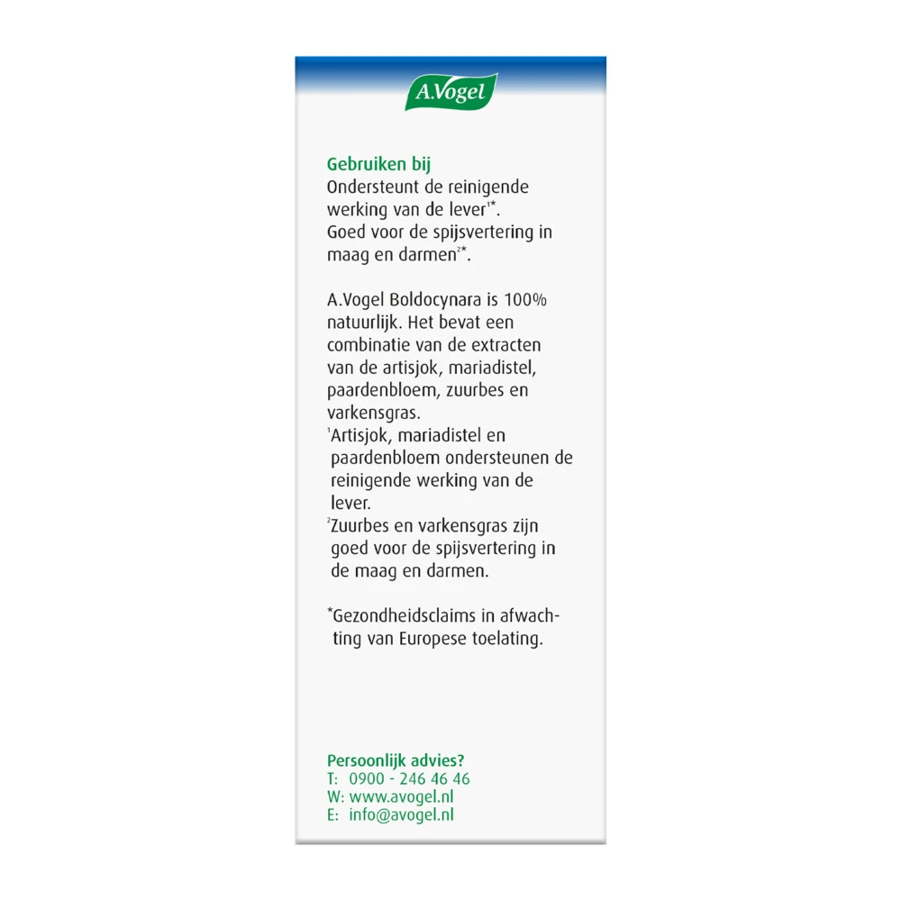A.Vogel Boldocynara Druppels De Boldocynara Druppels van A.Vogel is een voedingssupplement en kruidenpreparaat dat goed is voor de lever* en de spijsvertering. Boldocynara druppels bevat de extracten van Artisjok, Mariadistel, Paardenbloem, Zuurbes en Varkensgras. Artisjok, Mariadistel en Paardenbloem ondersteunen de reinigende werking van de lever. Tevens ondersteunt Paardenbloem het functioneren van de maag en tenslotte zijn Zuurbes en Varkensgras goed voor de spijsvertering in de maag en