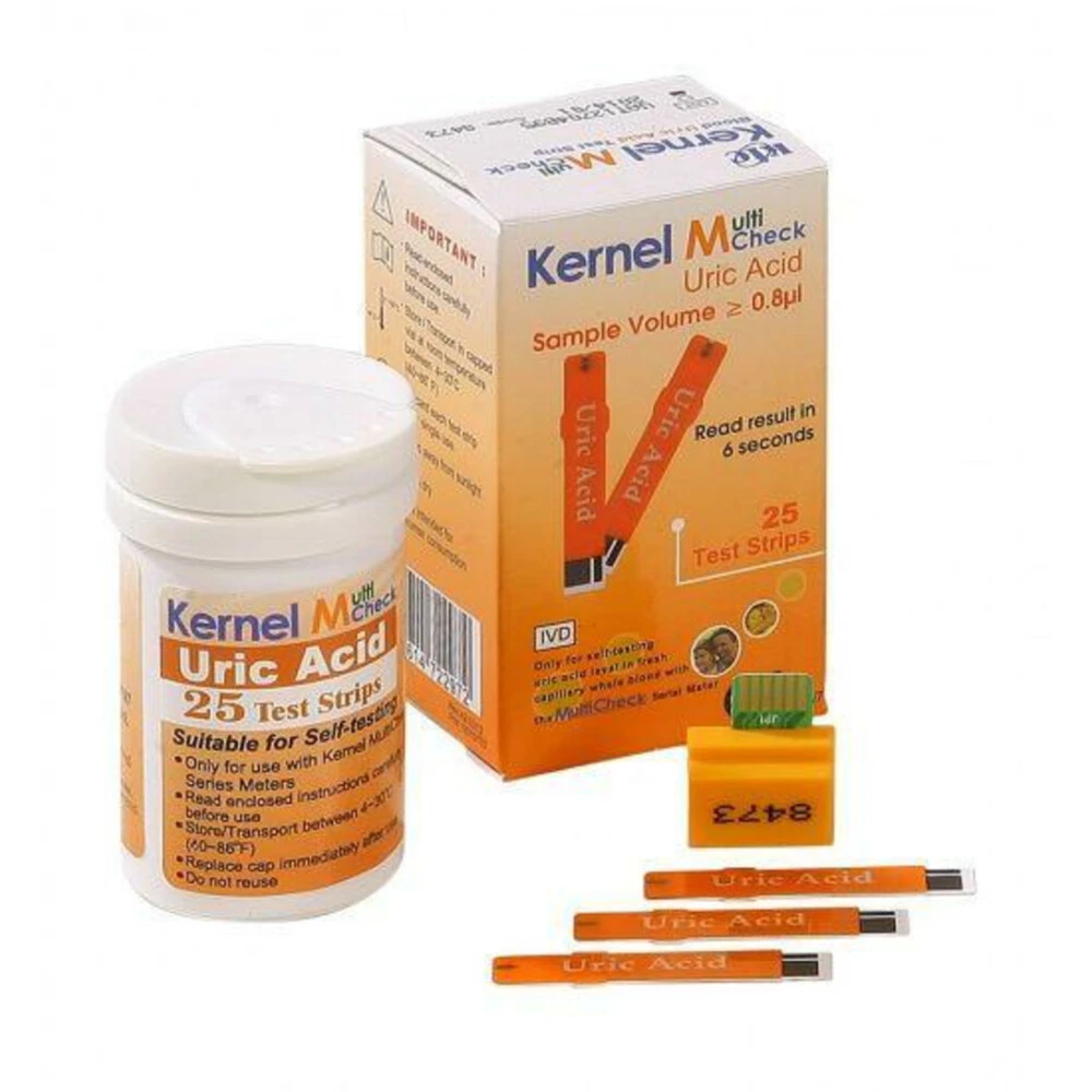 Testjezelf Multi Urinezuur StripTestjezelf.nu Multi-Check Urinezuur Strips zijn bedoelt voor gebruik in de Testjezelf.nu Multi-Check Glucose & Urinezuur Meter. Hiermee kan gemakkelijk en betrouwbaar gewoon thuis het urinezuur gehalte vast te stellen. Op iedere verpakking van de achterkant van de verschillende Multi-Check meters staat aangegeven voor welke meting de meter geschikt is. Dit is te herkennen aan het groene stickertje op de achterkant van de doos.Navulverpakking met urinezuur test
