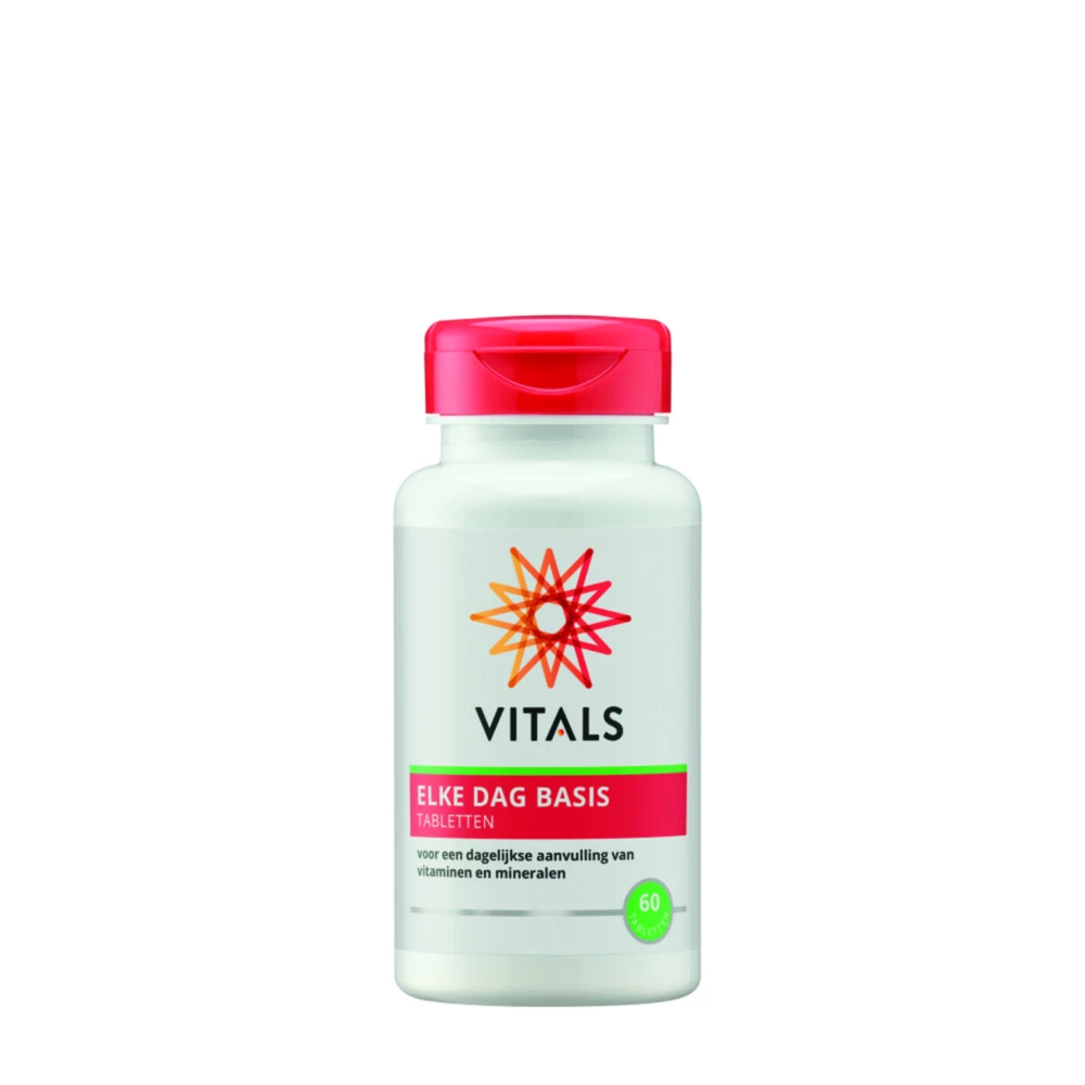 Vitals Elke Dag BasisElke Dag Basis is een zorgvuldig ontworpen multi die bedoeld is voor jonge mensen die gezond zijn en gezond leven, als basisaanvulling op de voeding. Bij de samenstelling ervan is – net als bij alle multi’s in de Elke Dag-serie – gekozen voor goed opneembare stoffen en verbindingsvormen, en in verantwoorde, uitgebalanceerde doseringen. Per nutriënt rekening houdend met de gemiddelde inname van jongeren en jongvolwassenen. En rekening houdend met de ge